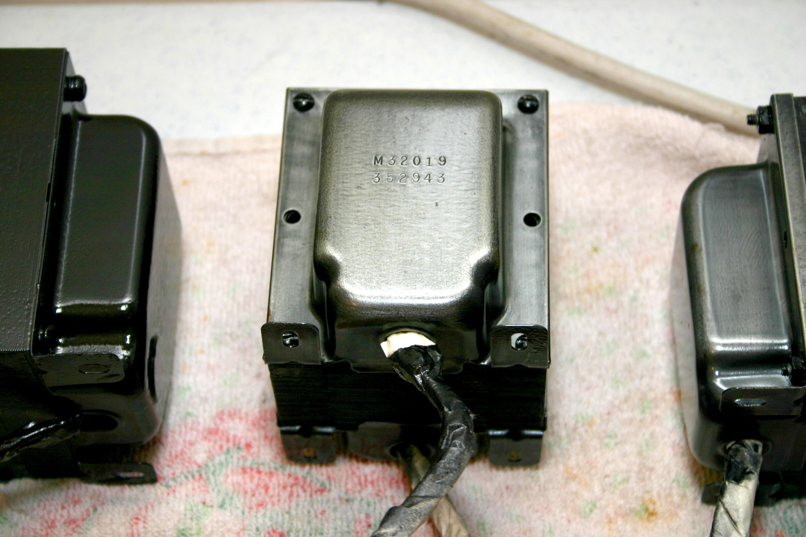 The wonderful original EICO output transformers, stripped for painting.